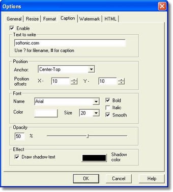 El programa permite redimensionar de doce formas distintas, convertir entre los formatos más populares (BMP, JPG, GIF, PNG, TIF, TGA, WMF y más) y añadir la marca de agua con diversas opciones de personalización. La galería de imágenes es también completamente configurable.